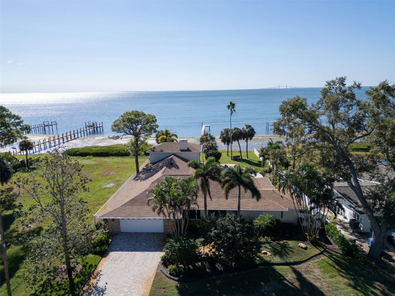 Nestled within the iconic Pink Streets of St. Petersburg, this exceptional waterfront residence offers a rare blend of timeless character, modern upgrades, and an estate-sized setting on nearly half an acre. Completely remodeled in 2017 by the renowned Extreme Team McClure Contractors, the home has been thoughtfully reimagined for both elegant everyday living and effortless entertaining. Spanning a generous footprint, the residence features five full bedrooms and four bathrooms, a formal living room and dining space, and a desirable split-floor-plan design highlighted by a private primary suite with dual vanities and a walk-in closet. Ceramic tile flooring flows throughout, complemented by impact windows, a fireplace, and updated mechanicals including two A/C systems installed in 2017 and a brand-new water heater added in January 2025, along with a gas tankless system and propane tank. A bonus upstairs room adds flexibility for a home office, media room, or guest retreat, further enhancing the home's versatility.Designed to celebrate its waterfront setting, the outdoor living experience is truly remarkable. The expansive backyard is framed by mature trees and opens to a resort-style pool surrounded by pavers, a 10-foot tiki bar with seating, and ample space for gatherings large or small. A private dock extends into the water, creating a seamless connection to the bay and offering an enviable lifestyle for boating, paddleboarding, or simply enjoying the peaceful views.Located at the southernmost tip of Pinellas County, just across from the sparkling open waters of Tampa Bay, the Pink Streets community is celebrated for its winding coral-pink roads, lush canopies, and architectural charm dating back to the early 1900s. The setting is tranquil and refined, with walkable access to waterfront parks and scenic overlooks of the Sunshine Skyway Bridge, including nearby Katherine B. Tippetts Park and Bay Vista Park. Despite its serene atmosphere, the location offers exceptional convenience, with easy access to Tampa, Sarasota, multiple airports, vibrant downtown St. Petersburg, and the area's award-winning Gulf Coast beaches. This is a truly special opportunity to own a waterfront home in one of St. Petersburg's most picturesque and coveted neighborhoods.