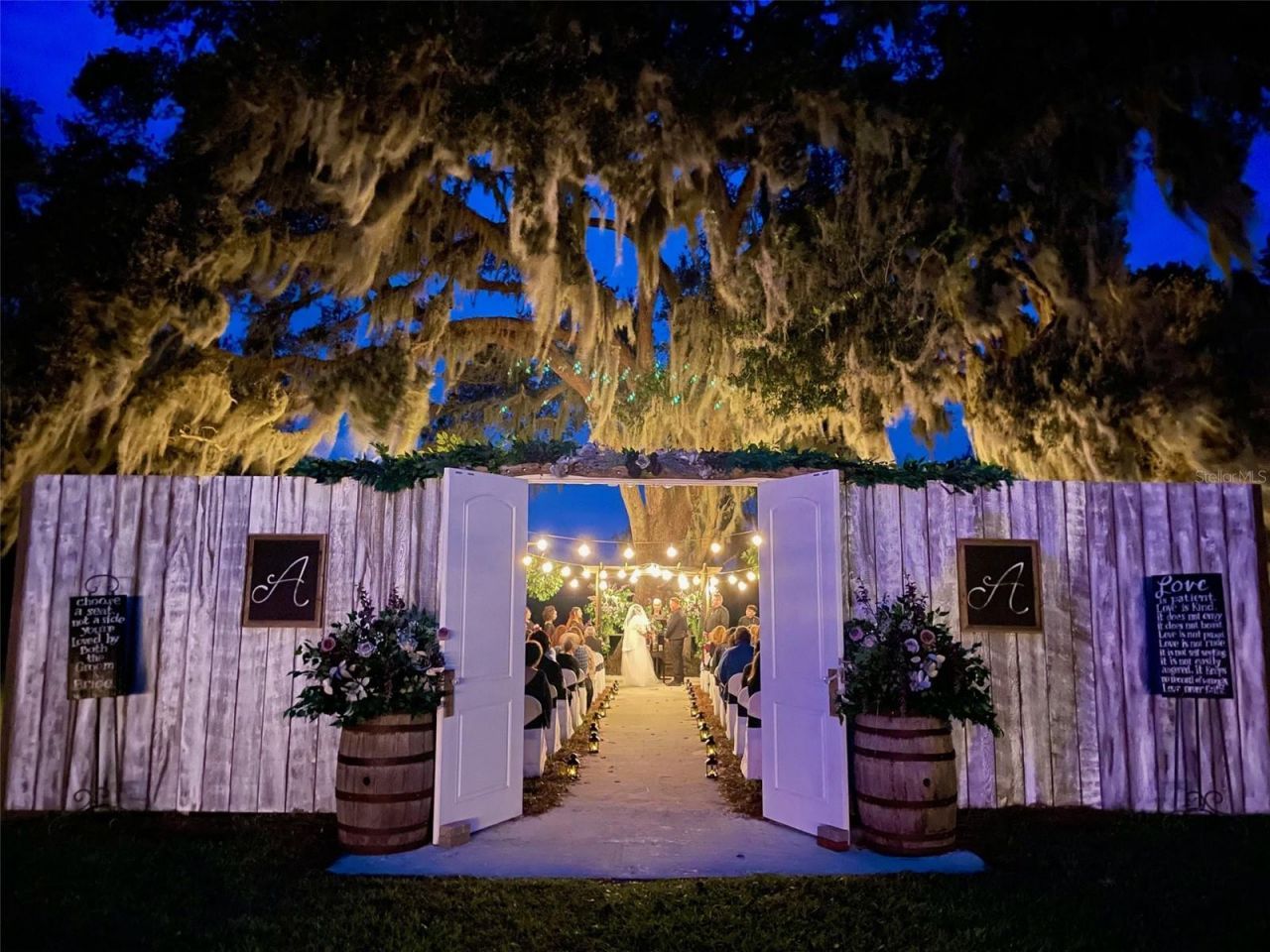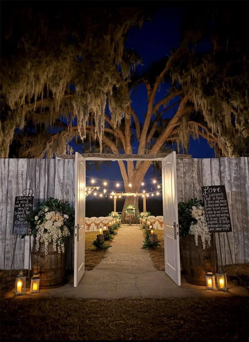 Welcome to a unique and versatile property located at 15300 Lake Iola Rd in Dade City-an established and award-winning event venue with endless potential. Formerly a flower nursery, this beautiful property now operates as a highly rated wedding and event venue, earning 5-star Google reviews and recognition as a Best Wedding Venue. The property offers parking for approximately 80 vehicles and multiple thoughtfully designed event spaces, including a wildflower ceremony area, dedicated reception space accommodating approximately 100 guests, and a dance floor area. The venue also features bridal and groom suites (bedrooms) complete with a full kitchen, two bathrooms, and a play area, along with separate outdoor restrooms for guests. The primary home is a charming three bedroom with three and half bath s, showcasing many original features, including the original exterior front door, a twin-stack fireplace, and a kitchen with the original double-stack stove. Additional updates include new carpet and a roof approximately 3 years old. Additional property highlights include an 830 sq ft basement, well pump was installed approximately 3-4 years ago, and septic system pumped approximately 2 years ago. The land has never been treated with pesticides, preserving its natural beauty and landscape. This property presents an incredible opportunity for event hosting, weddings, agritourism, or creative business ventures, all set within the peaceful charm of Dade City. The koi fish pond/ ceremony area will have stocked beautiful fish, although not all Koi fish will convey.