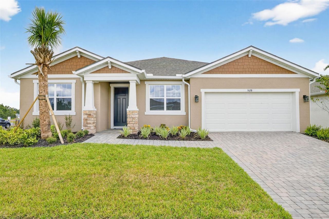 Welcome to The Red Rock floor Craftsman exterior plan, an exceptional home located in the gated community of Windwater in Parrish, FL. This beautifully designed property offers 3,057 square feet of open living space, featuring 4 bedrooms, 3.5 bathrooms, a study and oversized game room, and a 3 car tandem garage. This home is perfect for those seeking flowing living space and comfort. Upon entering, you'll be greeted by an open floor plan with 8' doors that seamlessly integrates the main living areas, adorned with Drayton 7x22 wood plank tile flooring for a modern yet refined look. The executive kitchen with strategically placed island is a culinary masterpiece, boasting 42 upper Barnett Painted Harbor cabinets and exquisite Carrara Beve quartz countertops, ideal for both everyday cooking and entertaining guests. The kitchen comes complete with all appliances. The master suite is a private haven, complete with a spacious bedroom with room for a king size bed plus, and two walk-in closets flank the spa inspired en-suite bathroom featuring split vanities, and a spacious glass enclosed shower and a linen closet. The additional bedrooms are well-appointed, ensuring comfort and privacy. There are two bedrooms located at the front of the home, just off the foyer that share full hall bath. The study is located in the same area as well, with the powder room that keeps the bedroom full baths private. The 4th bedroom is located on the rear of the home with its own full bath, great guest or in-law suite. The game room offers a versatile space for relaxation and recreation. There plenty of space for a pool table, arcade games or even a theater set up. The protected covered screened in lanai, accessible through sliding glass doors in the great room, provides an ideal setting for outdoor living and entertaining. Whether you're hosting a gathering or enjoying a quiet evening, this space enhances the indoor-outdoor living experience. Pricing, dimensions and features can change at any time without notice or obligation. Photos, renderings and plans are for illustrative purposes only and should never be relied upon and may vary from the actual home.